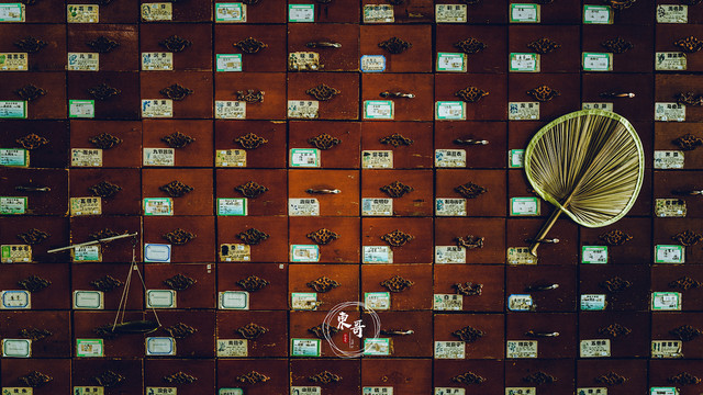 吃饱喝足,太阳正是最毒烈的时候,于是在街上闲逛了没一会儿,就赶紧躲进了一家凉茶店,吹吹冷气歇歇脚。这家凉茶店的装潢深得我心,除了冷气充足外,老式中药铺的装饰,以及大蒲扇等一系列很复古的元素,让我一下就爱上了这个店。