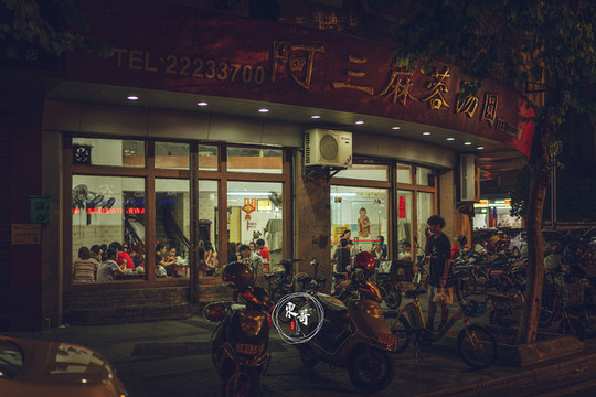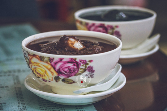 另一份红豆沙加汤圆,也是不遑多让的好味道。汤圆的内馅儿是花生拼黑芝麻两种,和红豆沙都是绝佳的组合。夜晚的顺德,褪去了白天的暑热。吃上一碗冰凉舒爽的芝麻糊汤圆,沁心入脾的满足感,放慢脚步的悠闲,向往的生活不就本该如此吗?