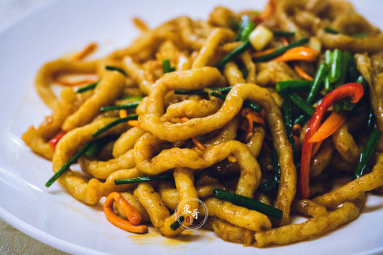 五柳炸蛋是广东地区的特色,炸好的鸡蛋加上酸姜、酸萝卜等五种切丝的腌菜一起炒制,口感酸酸甜甜,脆嫩交织,同样让我印象十分深刻。家常菜就是有这么一种魔力,让你不由自主的想来碗米饭,大吃特吃起来。来顺德这么多天,第一次由衷地需要一碗白饭来作陪。