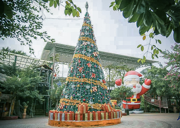 经过半个小时的车程,我们就来到了长鹿旅游休博园,我的第一感觉就是:这里的圣诞氛围太浓厚了,进门处就有两棵圣诞树,在园内也随时都能看到圣诞的元素,特别是金牛广场上,有一棵超大得圣诞树,还有一个几米高的超大圣诞老人。