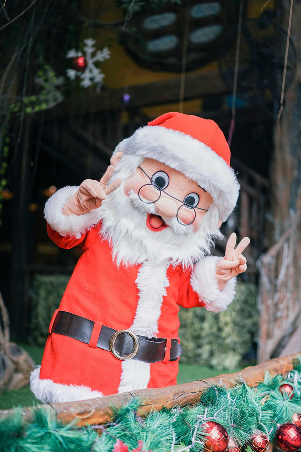 除了这些静态的圣诞元素,还有动态的圣诞老人,在园区内,我就偶遇了一个憨态可掬的圣诞老人,雪白的胡子上笑呵呵的表情,让我这个大朋友都忍不住跑去和他合影,更别提小朋友们看到他有多兴奋了。