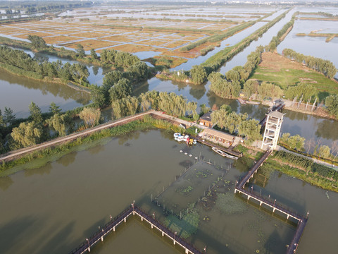 位于高邮北郊界首镇的高邮湖芦苇荡湿地公园度假区总面积约35平方公里,以高邮湖和界首千年古镇的旅游资源为依托,充分挖掘其生态和人文内涵,汇聚高邮和界首古镇地域风情,是一处融湿地观光、休闲娱乐、养生度假、美食体验、科普教育、特产销售等多功能于一体的综合性精致公园式度假区,如今已成为远近闻名的一个网红打卡地。