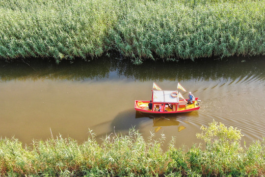高邮湖芦苇荡生态湿地,它既有水天一色的生态风光,也有白鹭上青天的潇洒俊逸;既有“渔舟唱晚”的诗情画意,也有快艇刺绿波的肆意激荡。在这里,自然风光无限好,哪怕只是深吸一口不含汽车尾气的清新空气,好似能抛却一切燥热,让全身都变得通透而又轻盈起来。