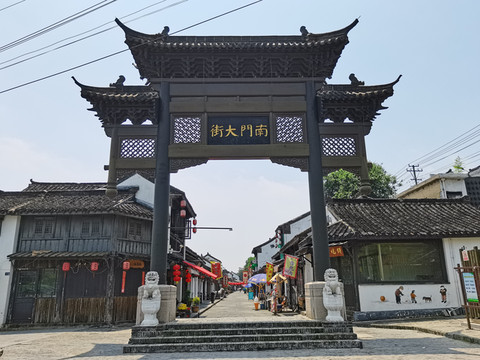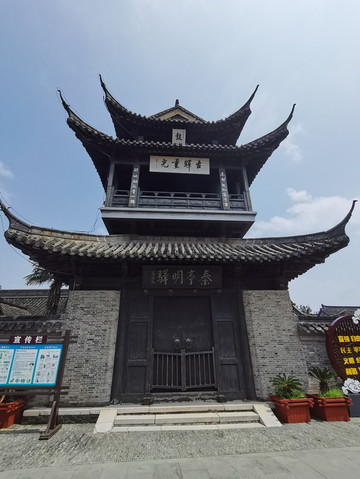 开着导航,经过一个大大的标着“界首古镇”的门楼后,并没有看到哪里有成片的古建筑或仿古建筑。镇子真的不大,与普通的乡镇在外观上没有什么不同,真到看到一块嵌在墙上的路牌才大致知道主要的景点是:护国寺、大清邮局、历史陈列馆、华中雪枫大学旧址。可能因为天热、游人稀少,所以有的景点没有开放,只参观了护国寺和华中雪枫大学旧址。