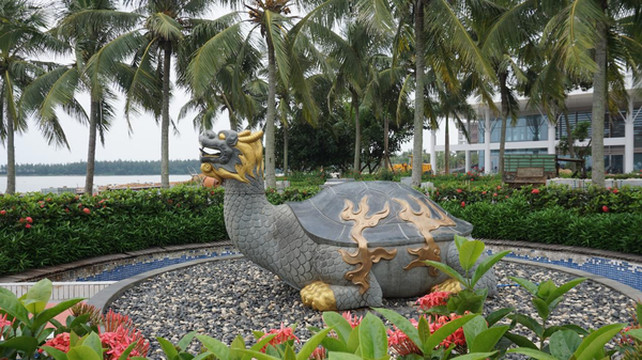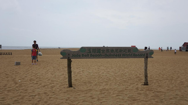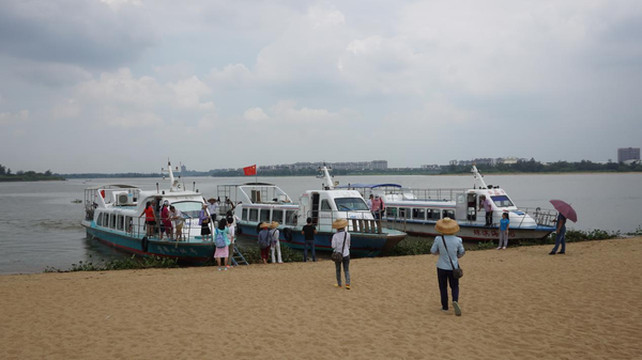 与论坛隔河的还有一片沙洲半岛,玉带滩。玉带滩是受南海潮水和河水共同顶托堆积而成。全长8.5公里,最宽处约800米,狭窄处仅10多米,形似一条“玉带”。沙洲把南海和流入大海的河分隔开来,获“分隔海、河最窄的沙滩半岛”吉尼斯之最。