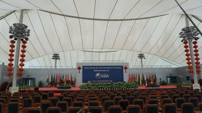 2001年,26个发起国政界首脑和要人齐聚博鳌,博鳌亚洲论坛宣布成立。后又追加了3个发起国,成为有29个国家组成的非官方、非营利性、定期、定址国际组织。不过当时主会场还没有建成,成立会址竟然是钢化膜搭建的,现在是纪念性景点。