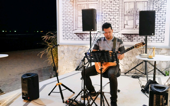 当天驻场的歌手小哥很棒,听着歌,吹着海风,身边有着star让我沉溺其中