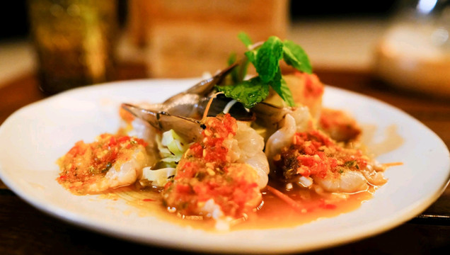 三文鱼刺身,生虾沙拉,泰生食一个讲究原味的鲜甜,一个伴着泰式对酸,甜,辣味的钟爱