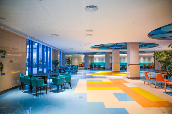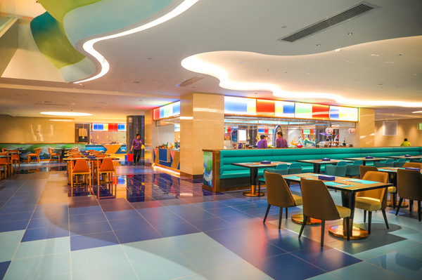在去酒店的路上,远远的就可以看到彩色的酒店,充满了活泼的色彩。抵达酒店大堂一眼就可以看到酒店门口的两个代表酒店形象的玩偶,大堂内还有小丑在表演杂耍。整个大堂的风格也是五彩缤纷充满童趣的,让人对接下来的体验都充满了期待。