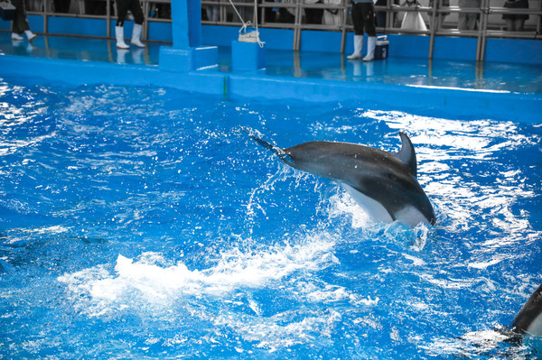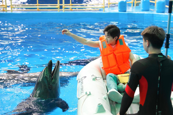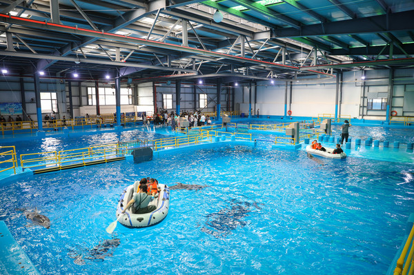 这里有32只6种海豚,都是从国外引进的。特别适合小孩子来这里,做亲子互动。海豚馆还有很多特色项目,例如划船,可以两个人,也可以四个人一起。穿上救生衣,会有专业的工作人员带着。