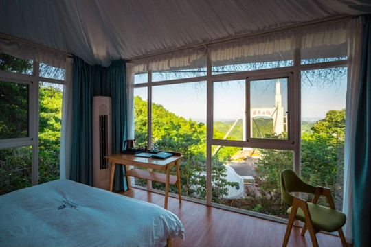 ?关于住宿:当然是选择矮寨大桥旁边的天桥仙居啦,坐在房间就可以看大桥,这里房型有木屋、全景玻璃屋、星空帐篷以及房车,选择多样各有其特色,我们住的房间里还配备了茶室,机麻,投影仪和浴缸,超级棒!在仙居最高处是一个颇大的无边际恒温泳池,穿上泳衣欢快的游几圈,然后听风看矮寨大桥,惬意又轻松。