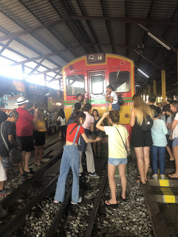 19.美攻铁道市场,这是属于我们的今天的第一个景点,还是因为太好奇、太想体验了,以前看宣传片,火车从市集中穿过,两边的摊位一下子收起来,感觉很特别,就想亲眼一见。但真去了,也就那么回事,集市上没什么想买的东西,找了一家店吃个芒果饭当早餐了,顺便等着看火车经过。最后还体验了一段火车,十分钟左右,一直在火车上被两边游客注视。