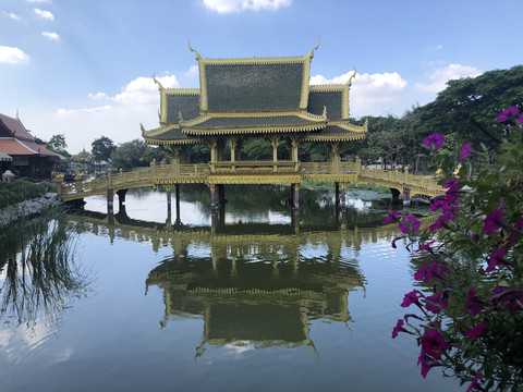 从景点出来就去到了⑥暹罗古城72府,在这里先去换了泰式服装,然后吃团餐,随后开始了游览。当天气温特别高,穿着泰服长裙实在是热的不行。72府就类似于北京的世界公园,里面涵盖了整个泰国著名的建筑,可以说来到这里就可以看遍泰国。其实这个景点建议有时间自己去逛逛,跟团的话只会带你去比较著名的几个地方。