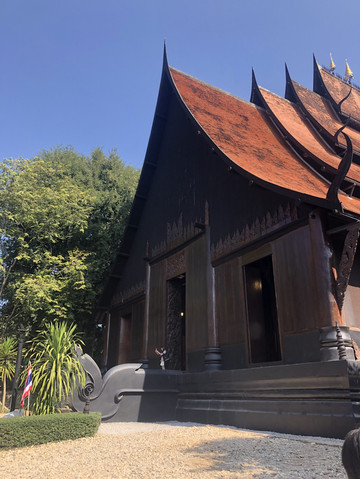 黑庙是由泰国鬼才艺术家Thawan Duchanee花费了36年的时间设计并建造完成的。黑屋博物馆搜集了大量关于死亡、地狱的展品,把远古时代的兽骨,原始民族的猎杀工具,古董和标本等,用现代艺术手法融合成各种艺术品。黑庙与白庙截然不同,展现了天堂与地狱,好与坏之间的天壤之别。