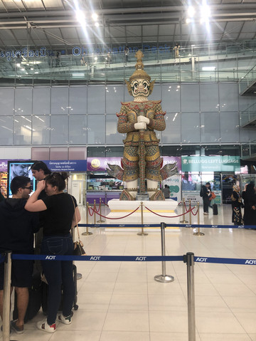 泰国当地时间9点35分(和国内有一个小时时差),飞机准点降落泰国素万那普国际机场,下飞机第一件事——换衣服,当地温度差不多有二十多度,而我还穿着加绒衣服。然后赶快去办理入境,人巨多!现在还是免签证费的期间,但是我觉得早知道要排两个小时,我宁愿提前办签证或者买个快速通道了。差一点误了接机,还好工作人员帮忙给协调了一下。入境官没有检查现金,感觉她最重视的就是住的酒店,所以填酒店时千万不要填错。入境后,取行李,然后去接机点,由工作人员带到车上,曼谷机场外的车真的巨多,大概五车道都是满满的车。接机提前从携程预订即可,车型很多,要看清楚可以搭载的人数和行李数量,初到一个新的国家,我还是习惯提前订好,比较有安全感。