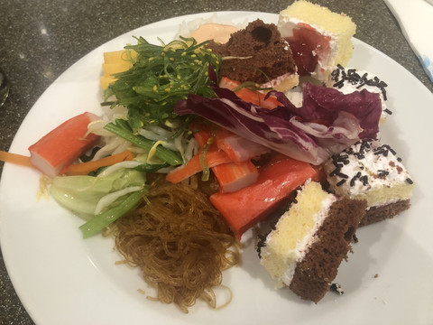 第11天,被这个半日游弄得基本没怎么吃饭,晚上在王权免税店,本来想正经吃一顿,时间又来不及,还是去了附送的自助餐厅,这个餐厅像是专门为中国人开的,全部都是中国人,菜品当然非常单调,唯一值钱的可能就是虾,所以都在那拼命抢。这也就是为什么一些新闻会出现,虽然哄抢这种行为体现的素质确实不高,但是也确实除了它没什么可吃的,还不如去7-11买个便当或者汉堡。