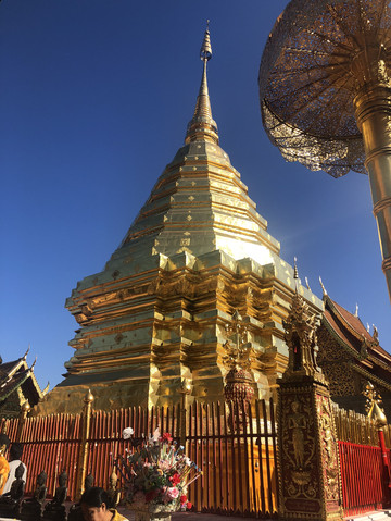 等了一会,车来了,接齐其他团友后,就前往今天的第一个景点⑧素贴山,素贴山位于清迈古城的西郊,海拔1600多米,是泰国著名的佛教圣地,山上有双龙寺,在观景台可以俯瞰清迈全景。还建有⑨蒲屏皇宫,是泰国国王的避暑行宫。
