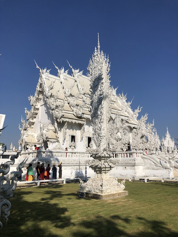 清莱离清迈有将近两百公里,车程要3-4个小时,所以如果决定去清莱,一定要留出足够的时间。清莱最著名的景点就是13.白庙、14.蓝庙、15.黑庙,现在市面上清莱一日游也是这三个庙顺序互换,各说各的好,我觉得能避开人流量高峰我就很满意了。