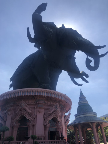 泰国的景点占地面积都不大,三头象神博物馆主体就是拥有三头象神的建筑,从外到内透出粉红色的少女心,特别适合拍照,要穿漂亮的长裙哟~周围布满很多大象的雕塑,整个景点看点不多,所有时间都花在拍照上哈哈~