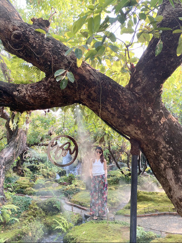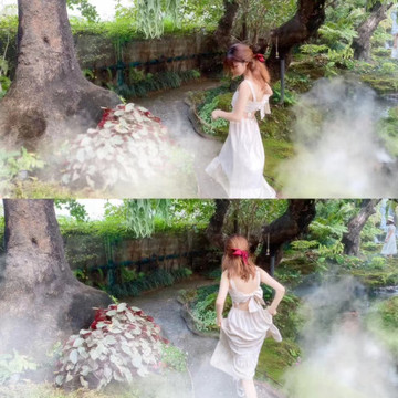 一家咖啡馆居然能同时拥有瀑布和森林,通过丰盈的水雾还能营造出仙雾缭绕的特效,真可谓动足了脑筋。其实,这些仙气是来自隐藏在蕨类、苔草下的水管细细喷出的水雾,每天的某个时候,这些水雾就会悄悄地喷出,一不小心你就有可能被喷成一只"落汤鸡“。 午间的阳光透过树枝的间隙洒在水雾上,那就是仙境的真实所在了。