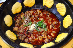 东北美食以豪爽大气著称,铁锅炖就是最好的代表,大大的一口铁锅,里面热腾腾的煮着各种美