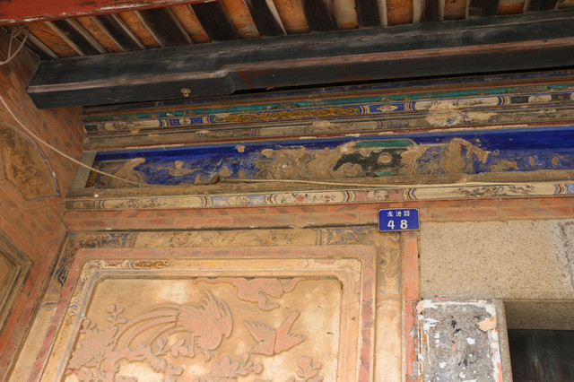 走进这些大厝,可以看到残破褪色的墙画、木雕、砖雕,美轮美奂,好像还在苟延残喘的诉说着往日的光辉岁月。我祖先苏遂的故居就是一座始建于清雍正年间的“进士第”,门口立有旗杆石2座,是后人新建的,原来的早已不见踪影了,大厝现在已经破败不堪,四周拉着危房的警戒线,旁边的附属小房已经倒塌殆尽,大厝已经很久没有人进去了,里面的景像可想而知,等待老屋的命运也是跟旁边的那些老房子一样,慢慢倒塌,慢慢消逝。