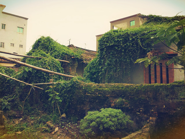 随着,一栋栋高楼的建起,人们一个接一个,一户挨一户的搬出了破旧低矮的大厝,大厝年久失修,没人管理,一座座倒塌,高楼却一栋栋林立,把大厝包围了起来,以往通往大厝的小巷也被新建的高楼挡住了,巷子两边的墙角长满了郁郁葱葱的杂草,墙角与草齐高的地方由于常年潮湿都了泛丝丝青绿,而且靠地上的一头长满了一层浅浅的青塔,可想这些地方常年是无人问津的,杂草丛生,虫鸣唧唧四起。