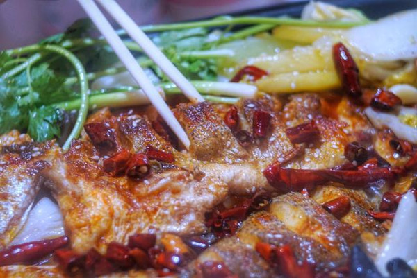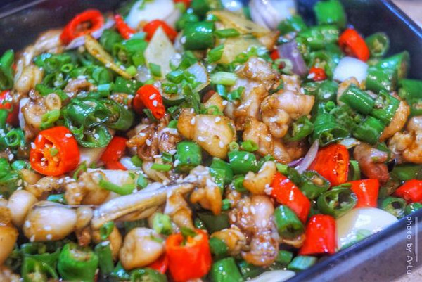 尖椒牛蛙 配菜不马虎,分量足,牛蛙嫩,五叔烤鱼的炒菜还是不赖的。