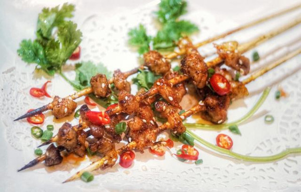 有烤鱼怎么能少得了烧烤呢!炭烤的火候学问高深,需要准确的把握大小与时间长短,才能鲜香得以充分的释放,很是讲究,丝毫容不得一丁点儿疏忽。五叔烤鱼的烧烤也是可圈可点,五花肉、鸡软骨、鸡翅、肉串、四季豆、更有烤巴西菠萝。烤五花肉 肥瘦相间,不柴,油脂已经析出。