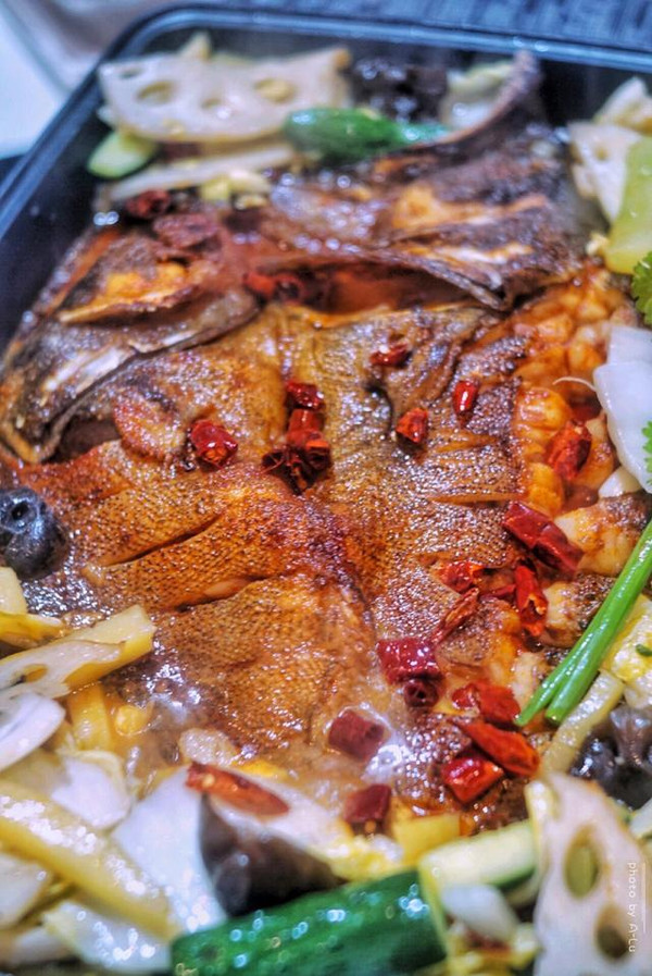 鱼刺可以忽略不计,鱼肉细嫩的同时又有着些许的Q,鱼皮胶质感强烈,炭烤的火候十分的精准,鱼肉的鲜香完全释放,比起烤海鲈鱼略胜的不仅仅是一筹。实在是让人赞不绝口,如需东星斑等更高端的海鱼需提前一天预订。
