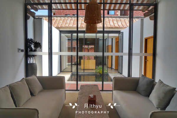入住需要在半亩塘办理,根据自己预定的房间,会有小哥引路。这次入住的是三处老宅的中间一处——那厝,外型依然有着老厝的风格,入门的玻璃门窗,让人眼前一亮,现代与传统融合风格,居然毫无突兀,美得不可言喻。