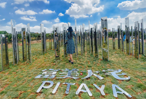 夜晚赏火龙果花,白天在田园里还有着各种打卡点。镜子迷宫在听花驿站的旁边,可以走进里面,与镜子合影,也是自拍的好地方。还有……其实火龙果园就是最佳的打卡地啦。