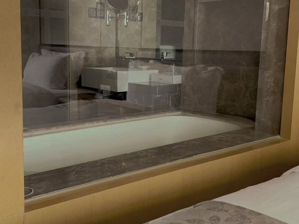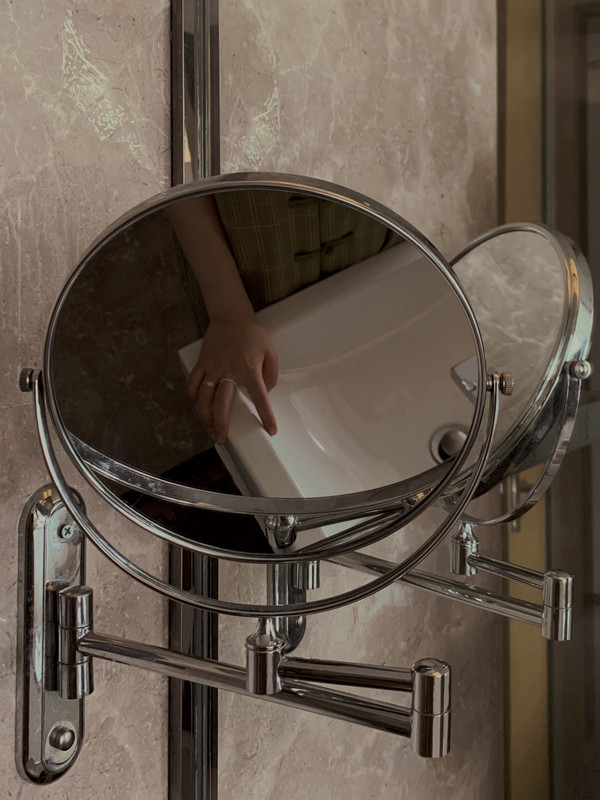 走廊的右边是面镜子,线条与墙面坦然呈现