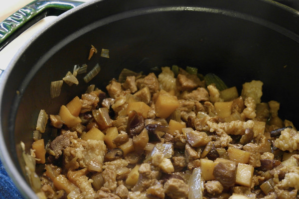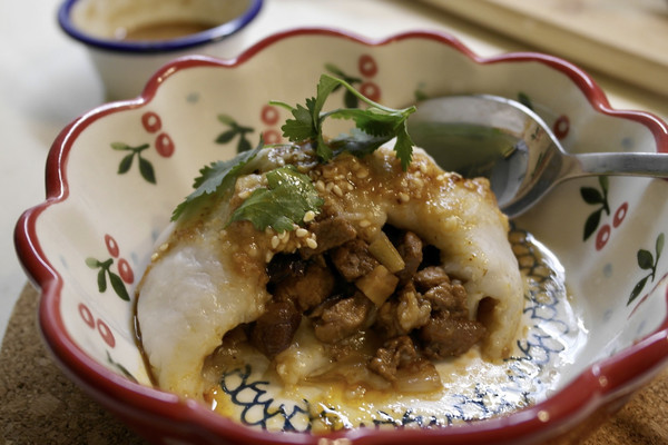 包裹着的鲍鱼、笋干、香菇、虾仁、豆腐干、肉丝等原汁原味,比较清淡