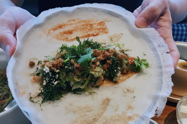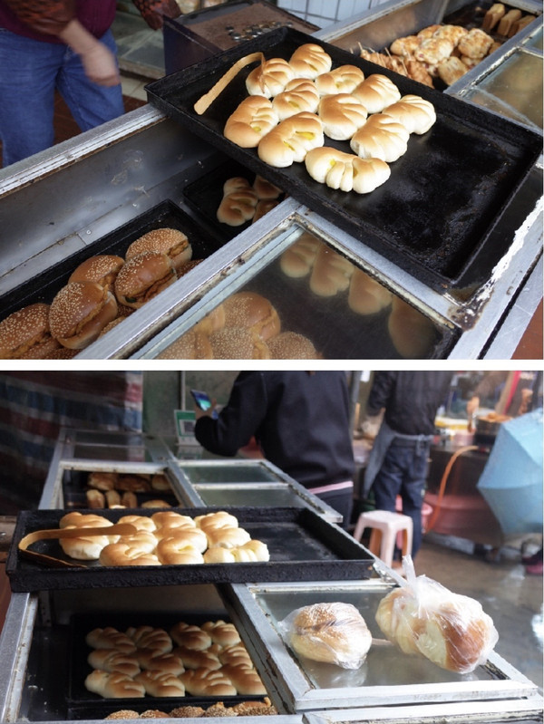外皮裹着椰丝,内陷夹杂着肉、鸡蛋及火腿