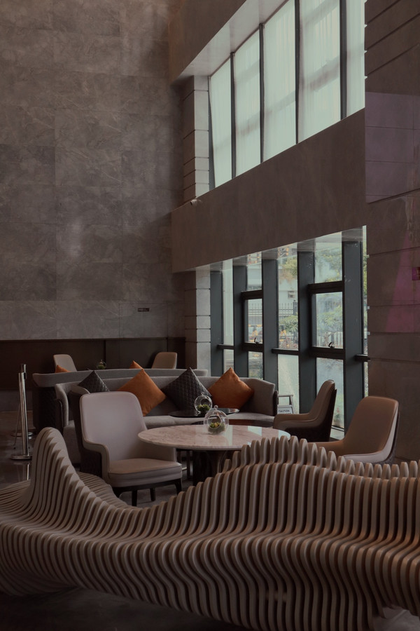 整体气质偏现代商务,开放、交流、共享的空间,平和而沉静