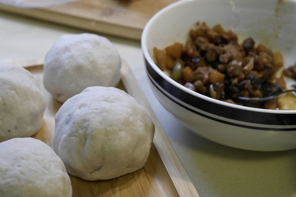 碾碎的芋头慢慢揉进木薯粉使外皮软糯带着香气