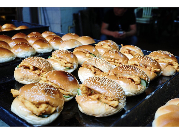 4元一份,大块鸡排、溢出的沙拉酱及黄瓜