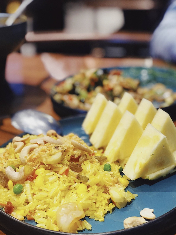 炒饭加了虾仁、坚果及肉松,食料的丰富及其色彩温润着味蕾