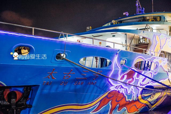 这艘船命名为“太古三号”,第一眼看到它的时候,就很有视觉冲击感。充分融合了古福船文化元素和闽南文化符号,展现出强烈的新国潮风格,再加上灯光的照射,呈现出美轮美奂的场景。