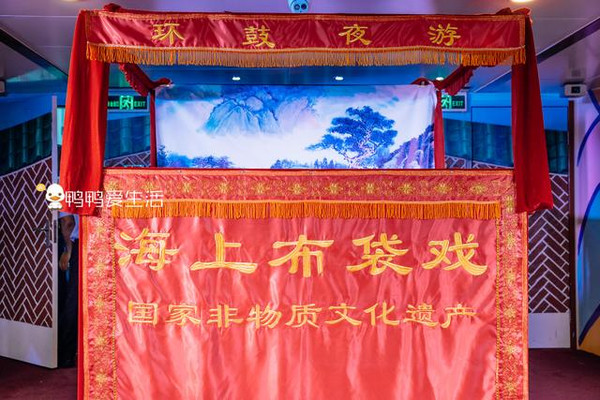登船后先来一楼喝杯茶吧,有年代感的瓷茶壶,一下就将时空距离穿越到了70年代以前。布偶戏也是在一楼观看,大四方椅坐起来很舒服,布偶戏这些年随着非遗传承的重视,在不少地方也能看到,但在海上看,还是头一回呢!
