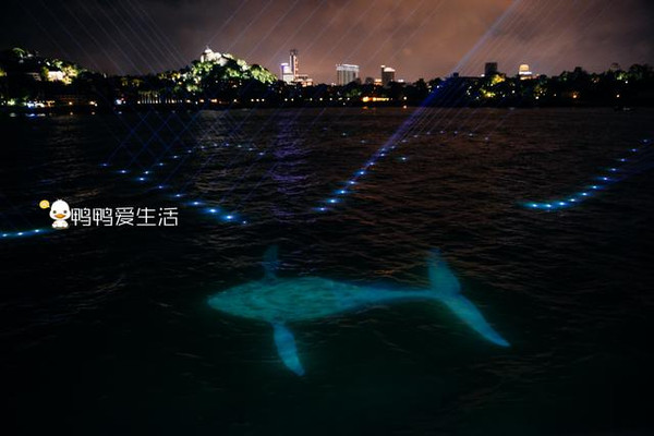整个航程最惊艳的要数海上激光投影灯光秀,在航程的后半段,来到三楼,感受一场视觉盛宴。游船射出一道道激光,海面犹如一块天然的画布,呈现出绚烂异常的视觉效果,