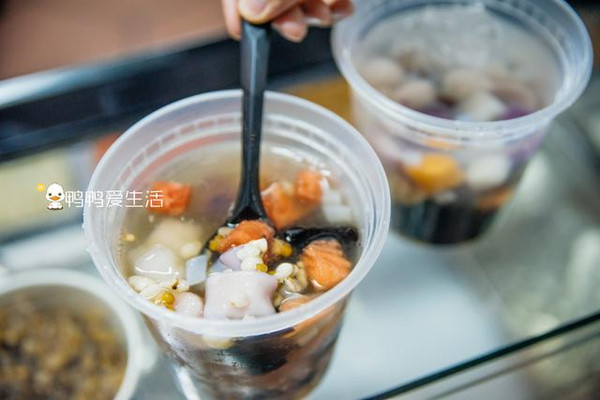 看完布袋戏,可以上到二楼,这里经营各种闽南小吃。进入9月的厦门,还是有点燥热,来一份清爽的四果汤吧。四果汤历史悠久,系福建闽南一带非常出名的特色小吃,兴于泉州、漳州一带,具有祛暑降温的作用,因而在夏季备受人们喜爱。每至炎夏,或是街边小摊,或是老字号店铺,人们总是喜欢适时地叫上一碗四果汤,消却炎炎夏日的闷热。在船上感受海风吹佛,喝上一碗四果汤,也是极为惬意。