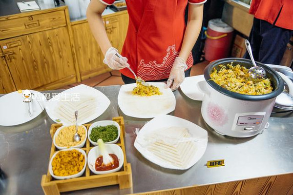 除了四果汤,在这边也看到了熟悉的“薄饼”,又叫做春卷,一包一卷成就美味。里面的菜馅熬制是关键,各种菜要切得够细,熬得够入味才好吃。皮要薄而不破,才能兜住这好料。
