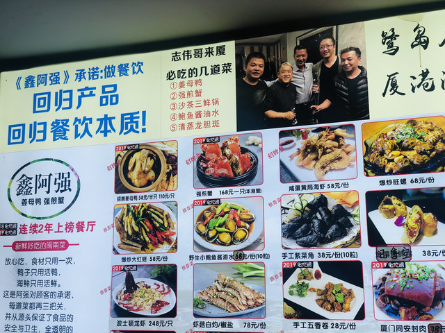 第四天:福建土楼,云水谣景区。今天也是租车前往,路程大概两个小时。这里古香古色,还是值得去看看的。人巨多,里面有个能近距离看古楼的收费项目,从和贵楼进去,大概十块一个人,一定要进去,是可以上楼的。晚上回来吃的姜母鸭阿强煎蟹(思东路店),这里强推一下这家店,姜母鸭非常好吃,煎蟹一般,就是正常,姜母鸭一定点,还吃了炒蛤蜊鲍鱼什么的,总的来说还可以。