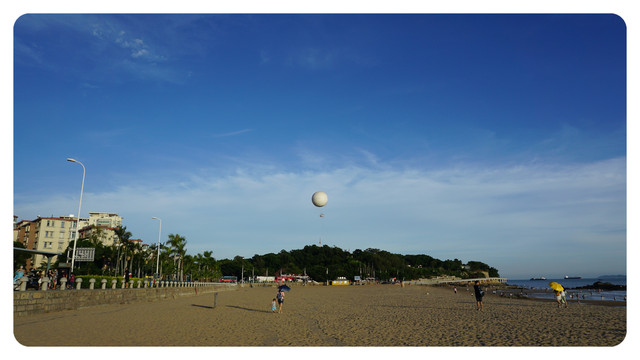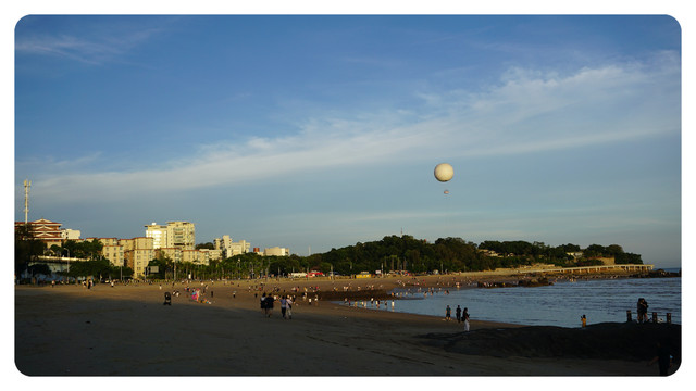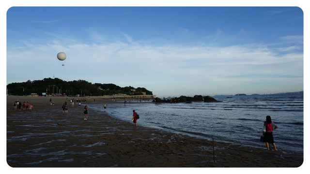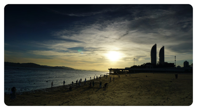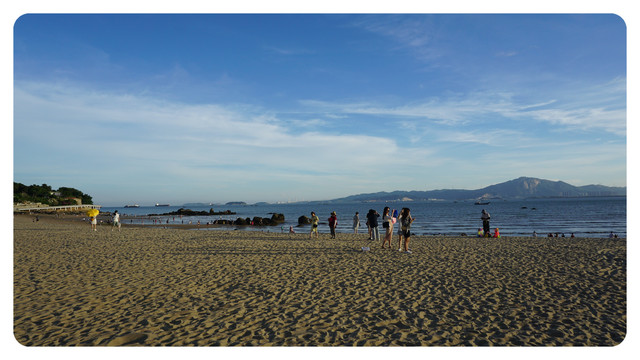 这里就是胡里山海滨浴场,随着太阳进一步西下,海滩上也变得越来越热闹了。