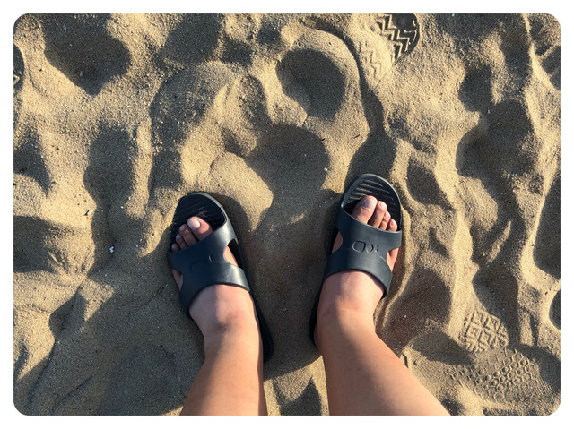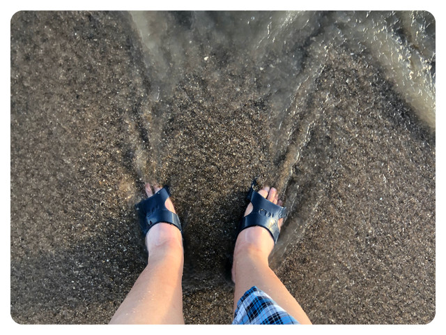来到沙滩,怎能不走一走沙滩路?这次特意带上的拖鞋,就是为了这一刻