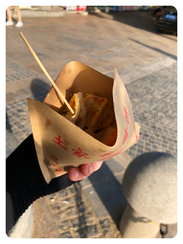 只是,还没走多少路就已经饿了,正好来到一个集市休息点,买一份鸡蛋饼填填肚子,只是没想到量太大,几乎都可以当晚餐了