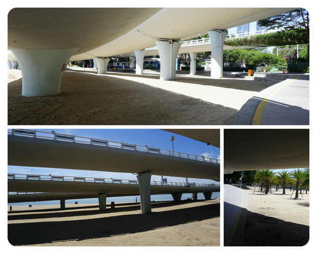从酒店门口出发,过了马路就是一大片海滩,比起上一次光秃秃的沙滩,明显这一带要更加漂亮,为什么呢?因为有木栈道。