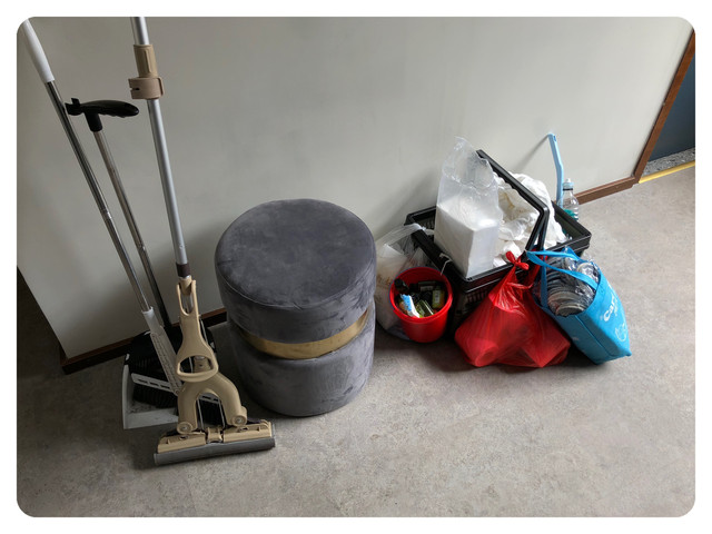 况且,保洁阿姨的装备已经在门口恭候多时了,虽然有些不太好看,但是距离后面一批住客开始办理入住的时间只有两个多小时了,保洁阿姨提早开始准备也无可厚非。